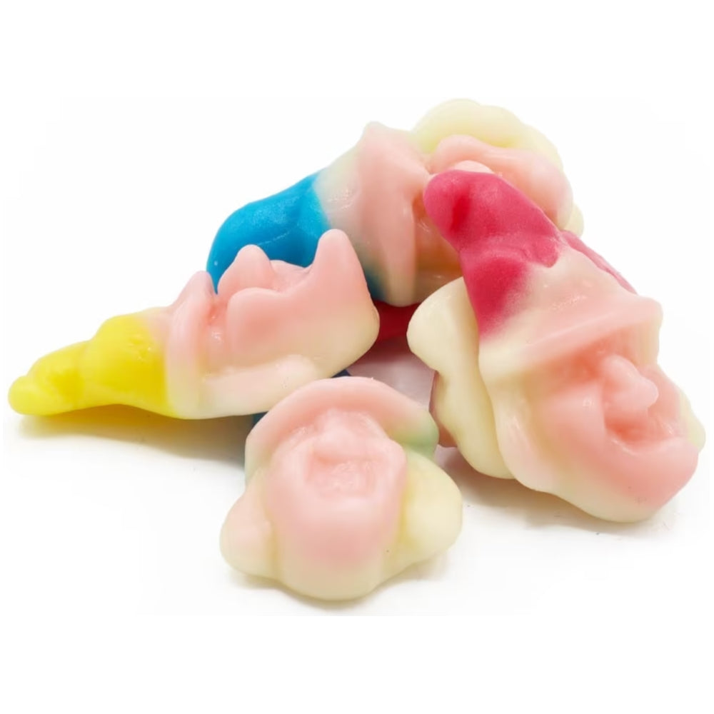 Strawberry flavour jelly sweets, in the shape of witches' heads. These witches heads jelly sweets have a delicious strawberry flavour.